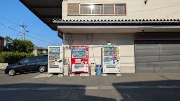 澤井米穀の頃は米屋らしく米の自販機や煙草の自販機も並んでいた頃があったようですが、調査時点では飲料自販機3台が並び、うち1台のみ電子マネー対応しています。