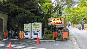 以前より伊藤園の自動販売機が2台並んでいましたが電子マネーには未対応でした。時期は不明ですが2023(令和5)年8月以降、2025(令和7)年7月までに自販機が2台とも更新され、2台とも電子マネー対応となっていました。