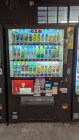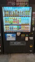 様々な自動販売機などが並んでいます。キリンとサントリーの自販機は以前より電子マネー対応していました。